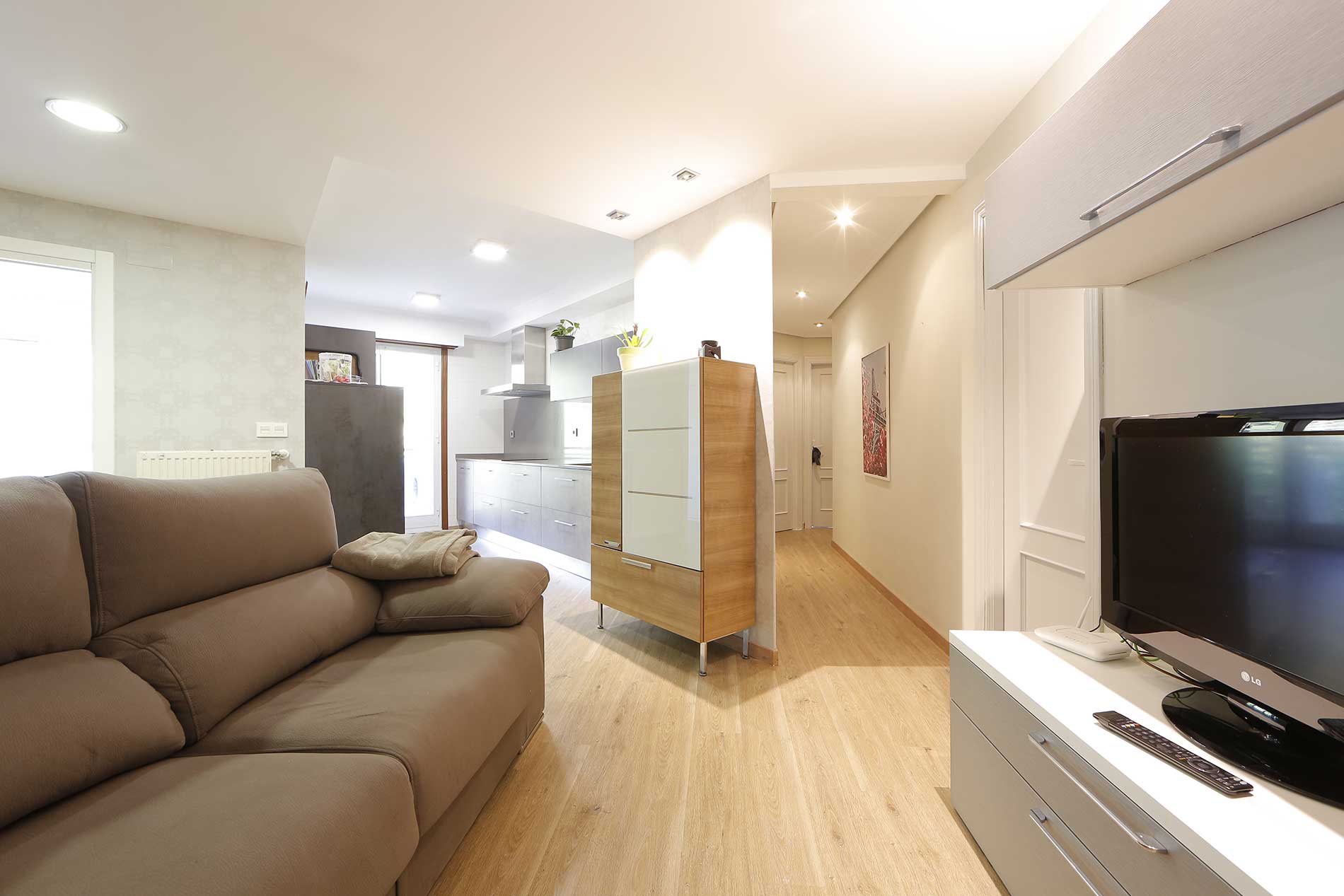Sukaldea egongelarekin bat egitean, etxean gela bat gehitzea lortu da.