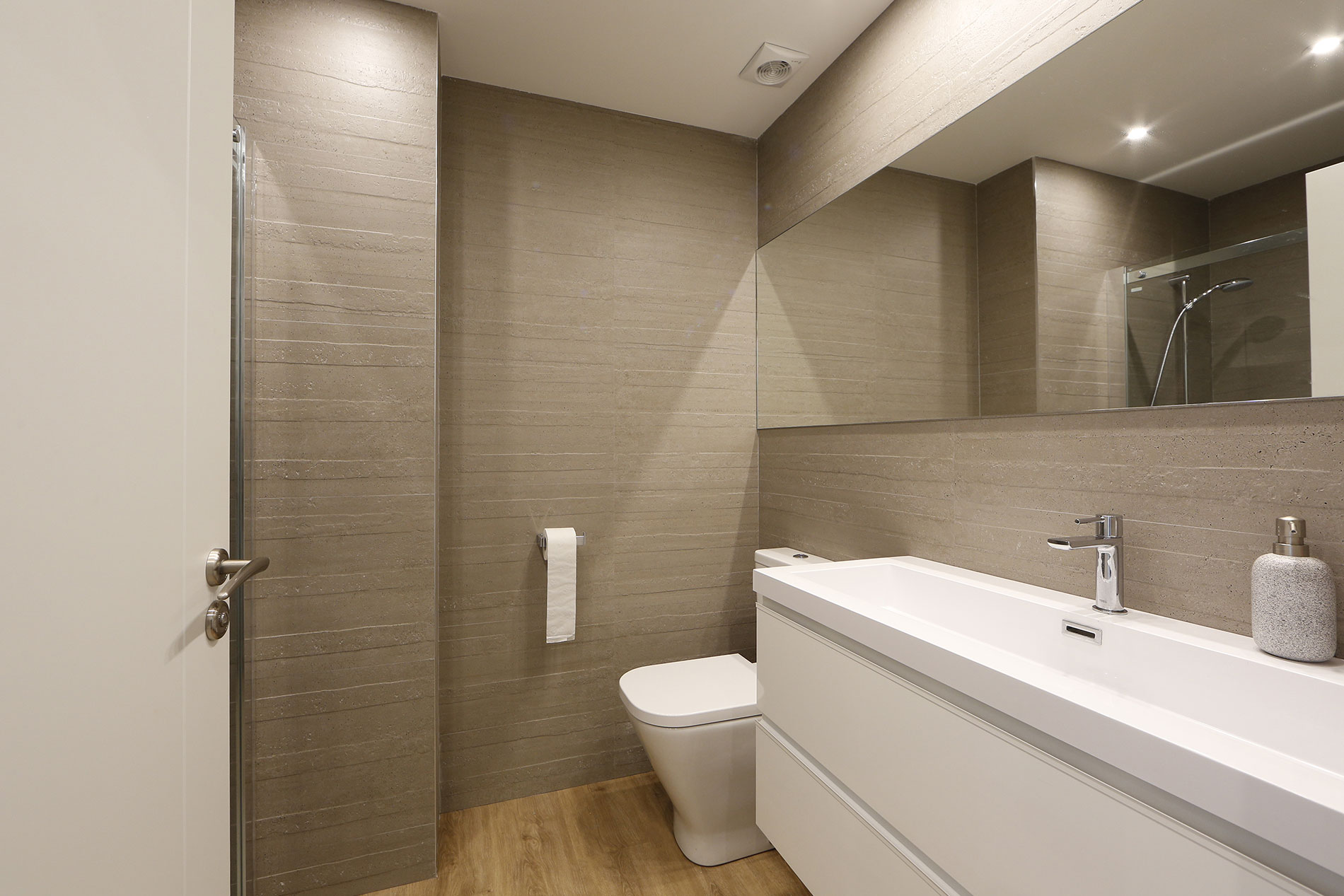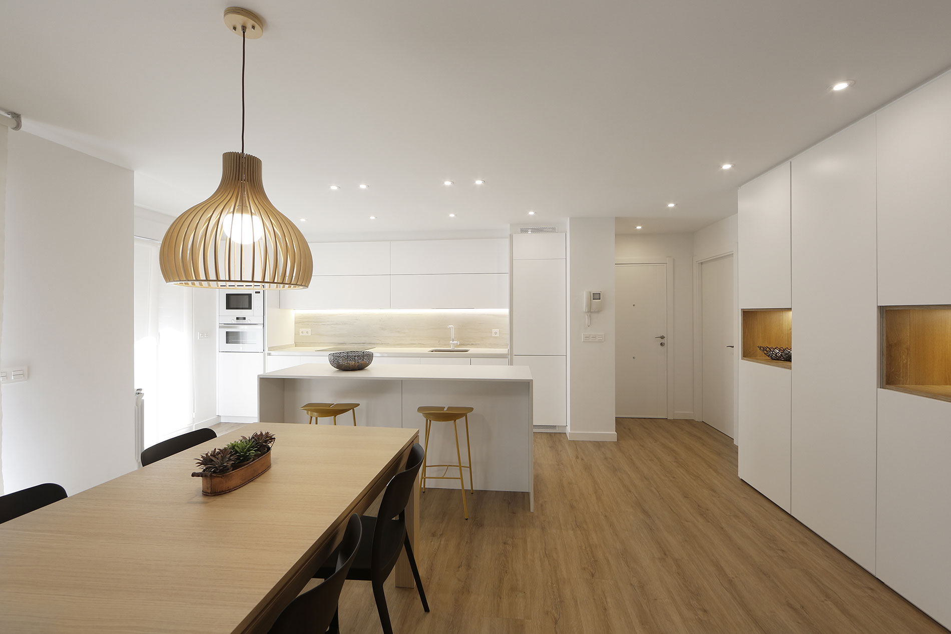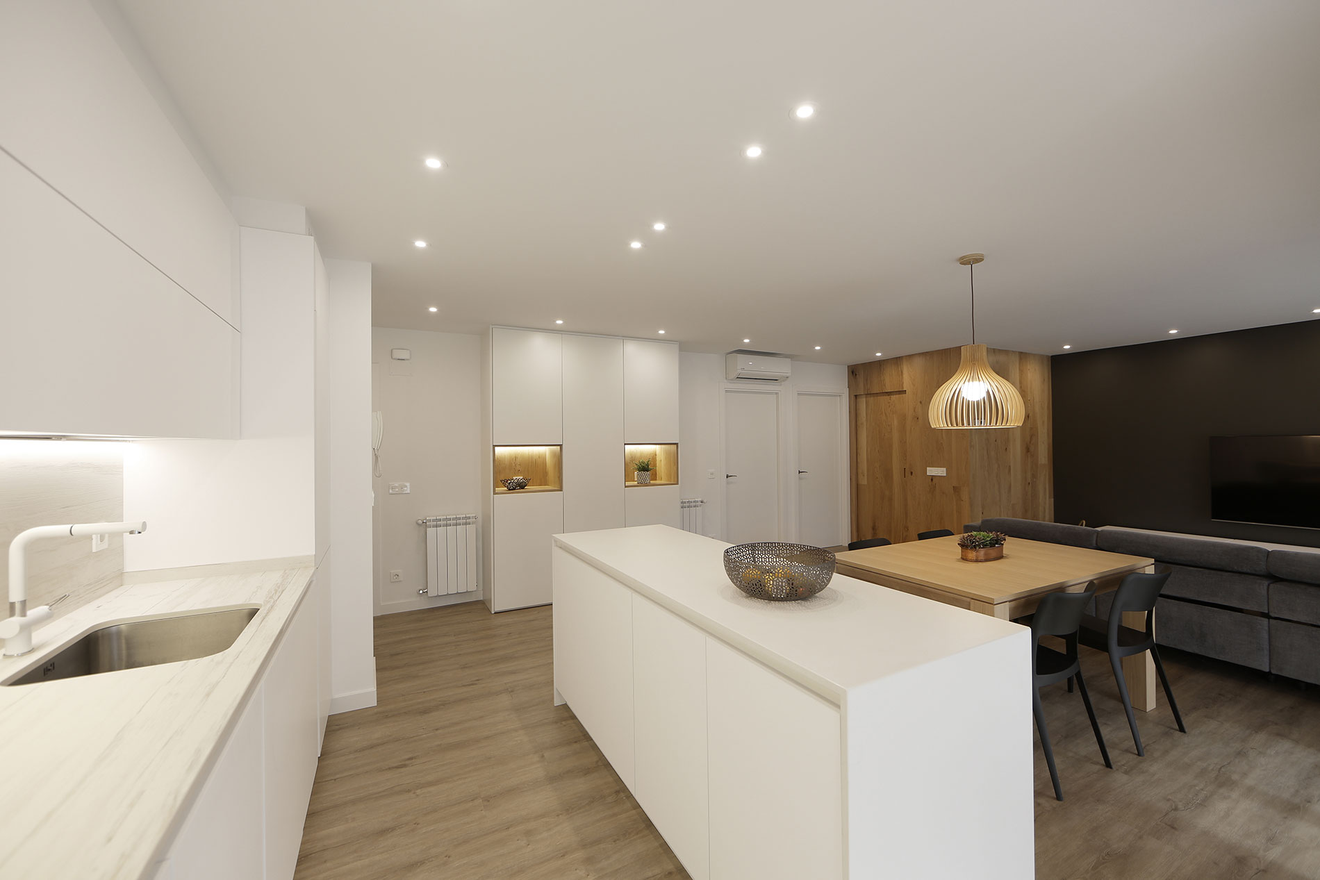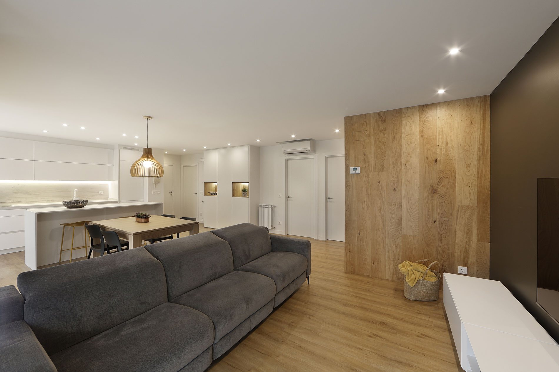 Kontzeptu irekiko sukaldeak egongela, jantokia eta sukaldea gela berean biltzen ditu. Egongelaren ondoan, paretak zurezko xaflez estalitako bainu bat gehitu da.